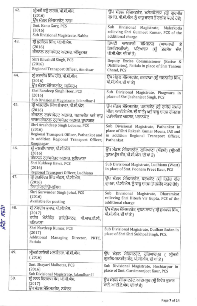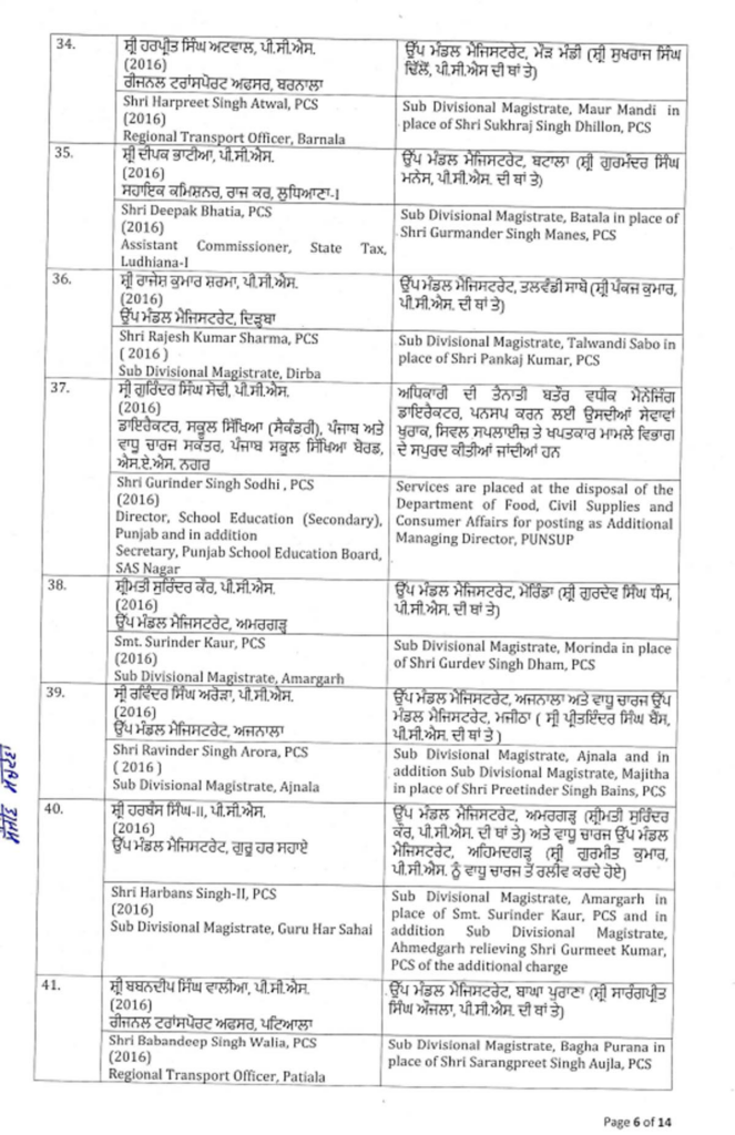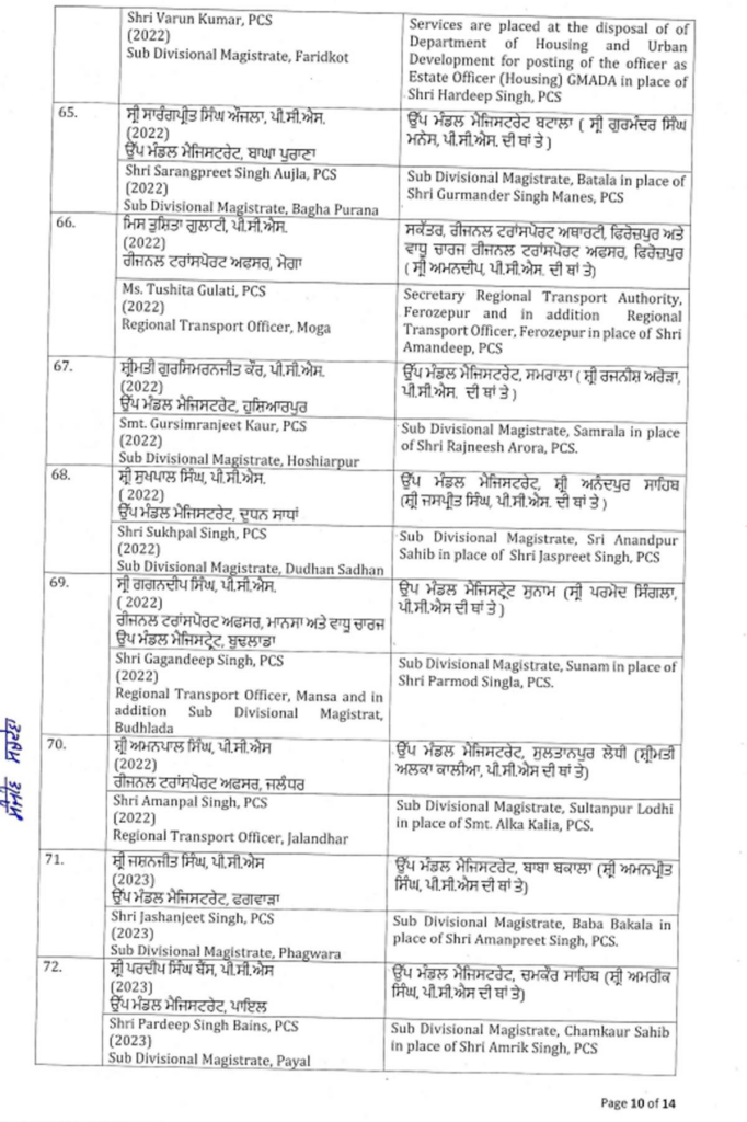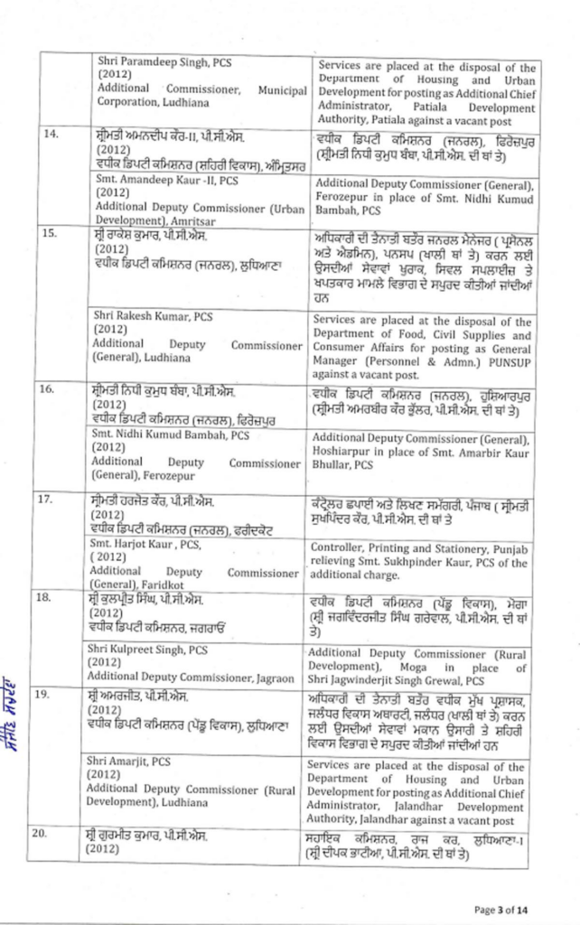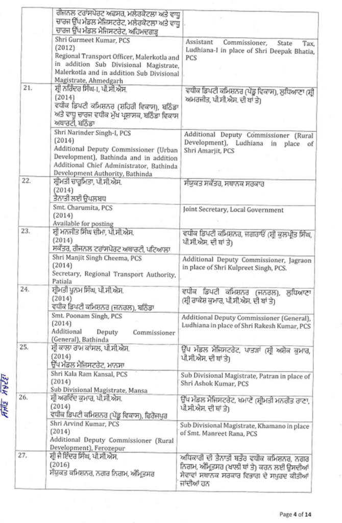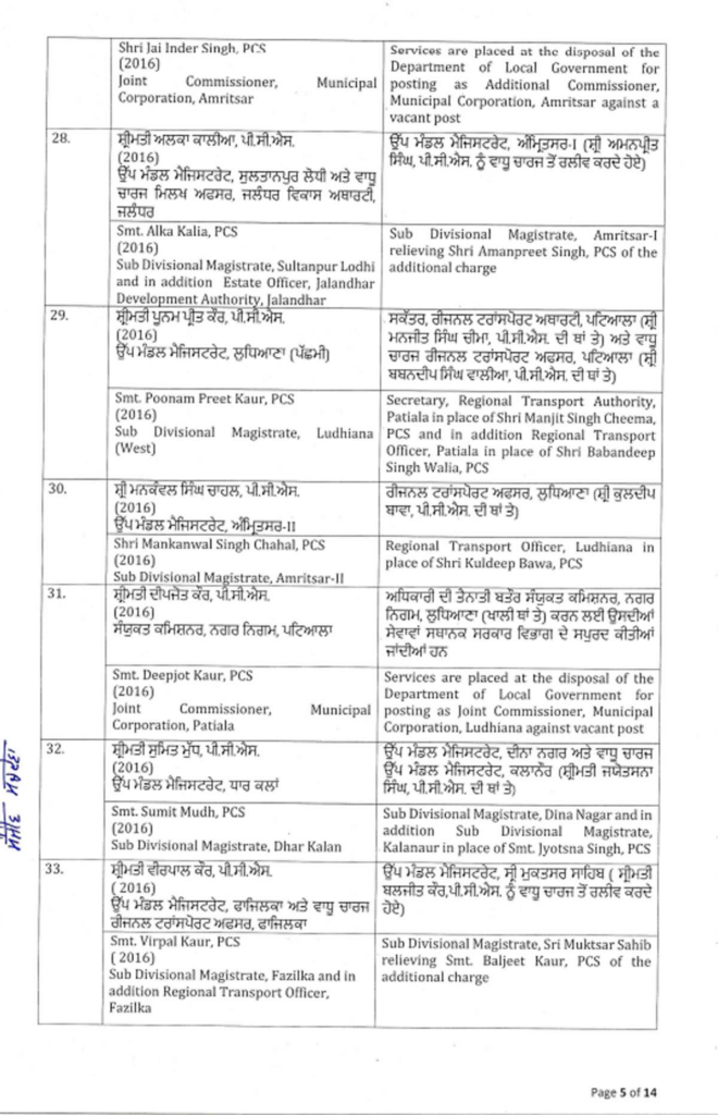 ਪੰਜਾਬ ਸਰਕਾਰ ਨੇ ਇੱਕ ਵੱਡਾ ਪ੍ਰਸ਼ਾਸਕੀ ਫੇਰਬਦਲ ਕੀਤਾ ਹੈ, ਜਿਸ ਵਿੱਚ ਅੱਠ ਆਈਏਐਸ ਅਤੇ 88 ਪੀਸੀਐਸ ਅਧਿਕਾਰੀਆਂ ਦੇ ਤਬਾਦਲੇ ਕੀਤੇ ਗਏ ਹਨ। ਸੂਚੀ ਹੇਠਾਂ ਦਿੱਤੀ ਗਈ ਹੈ…