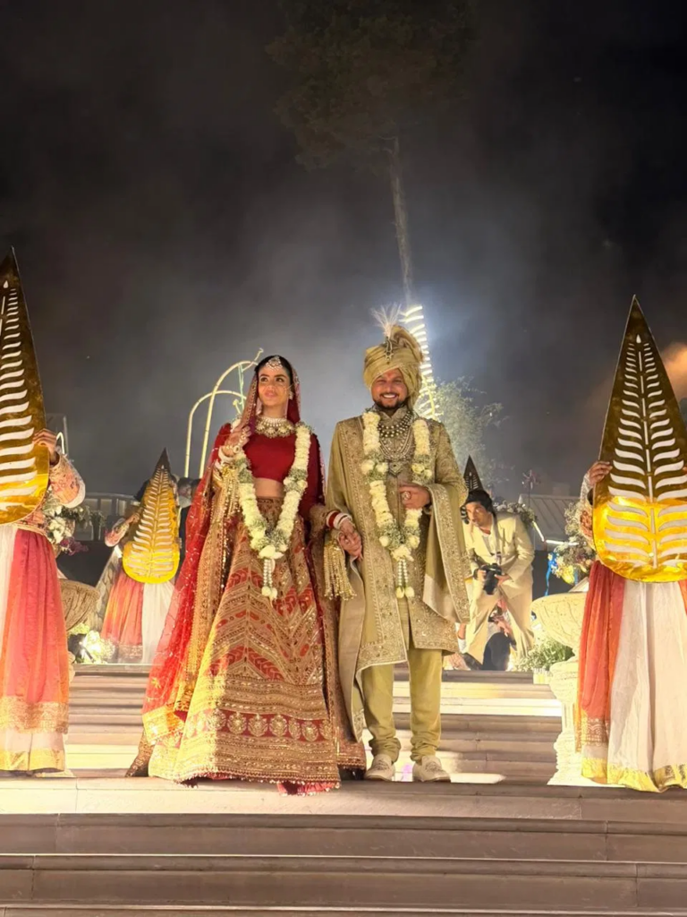 ਦੱਸਿਆ ਜਾ ਰਿਹਾ ਹੈ ਕਿ ਮਸੂਰੀ ਦੇ ਇੱਕ ਲਗਜ਼ਰੀ ਰਿਜ਼ੋਰਟ ਵਿੱਚ ਹੋਏ ਇਸ ਸ਼ਾਨਦਾਰ ਵਿਆਹ ਵਿੱਚ ਦੋਵਾਂ ਪਰਿਵਾਰਾਂ ਦੇ ਮੈਂਬਰ, ਨਜ਼ਦੀਕੀ ਦੋਸਤ ਅਤੇ ਕ੍ਰਿਕਟ ਜਗਤ ਦੇ ਕੁਝ ਖਾਸ ਮਹਿਮਾਨ ਸ਼ਾਮਲ ਹੋਏ। ਵਿਆਹ ਦੀਆਂ ਤਸਵੀਰਾਂ ਅਤੇ ਵੀਡੀਓ ਸੋਸ਼ਲ ਮੀਡੀਆ ‘ਤੇ ਵੀ ਵਾਇਰਲ ਹੋ ਰਹੀਆਂ ਹਨ।